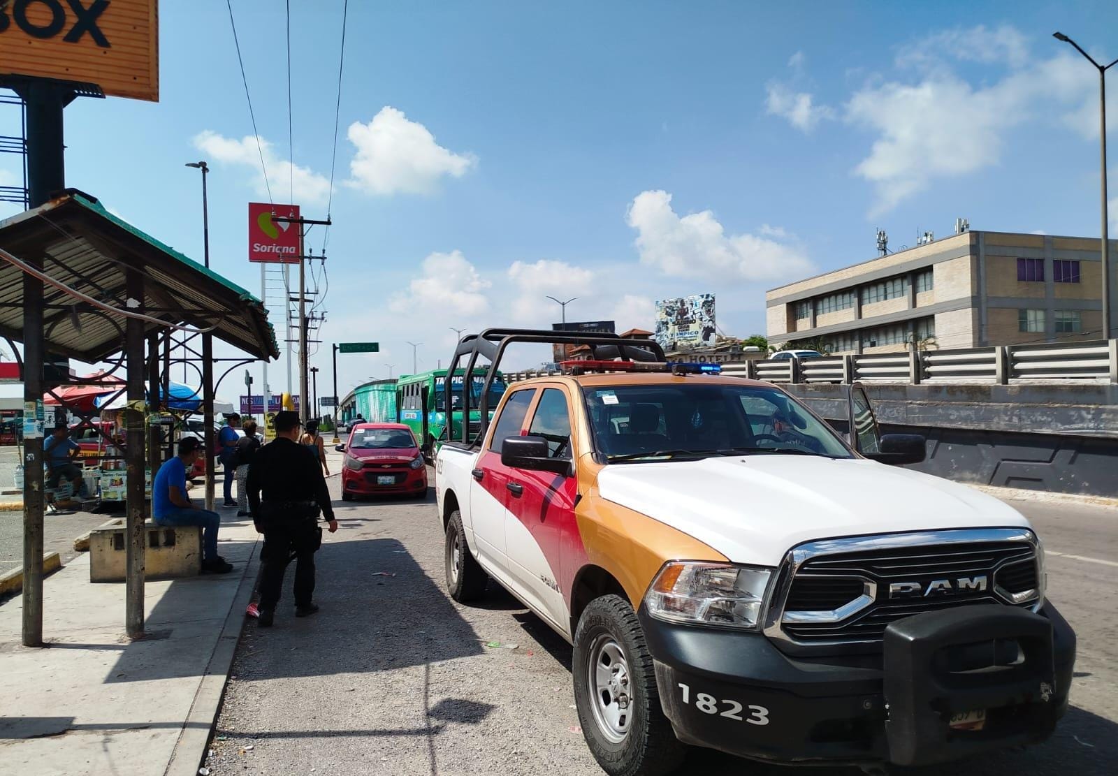 Una de las rutas en las que se mantuvo esta proximidad fue la número 50 Tampico-Valle, donde elementos de la Guardia Estatal abordaron las unidades y mantuvieron la presencia en el parabús de transporte público ubicado en la colonia Francisco Javier Mina.