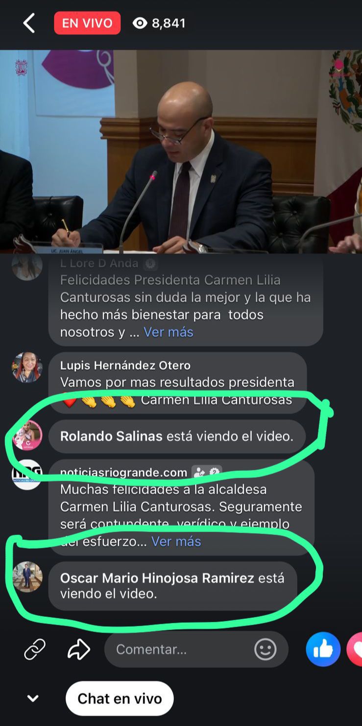 Funcionarios y empleados municipales fueron obligados a ver la transmisión oficial bajo amenazas de despido. Además, familiares cercanos de la alcaldesa, como su esposo Óscar Mario Hinojosa y su cuñado Rolando Salinas, aunque presentes en la ceremonia oficial, estaban «viendo» el evento en Facebook. Esta situación generó confusión y escepticismo entre los ciudadanos, quienes cuestionaron si estos actos reflejan una preocupación real por la veracidad del informe.