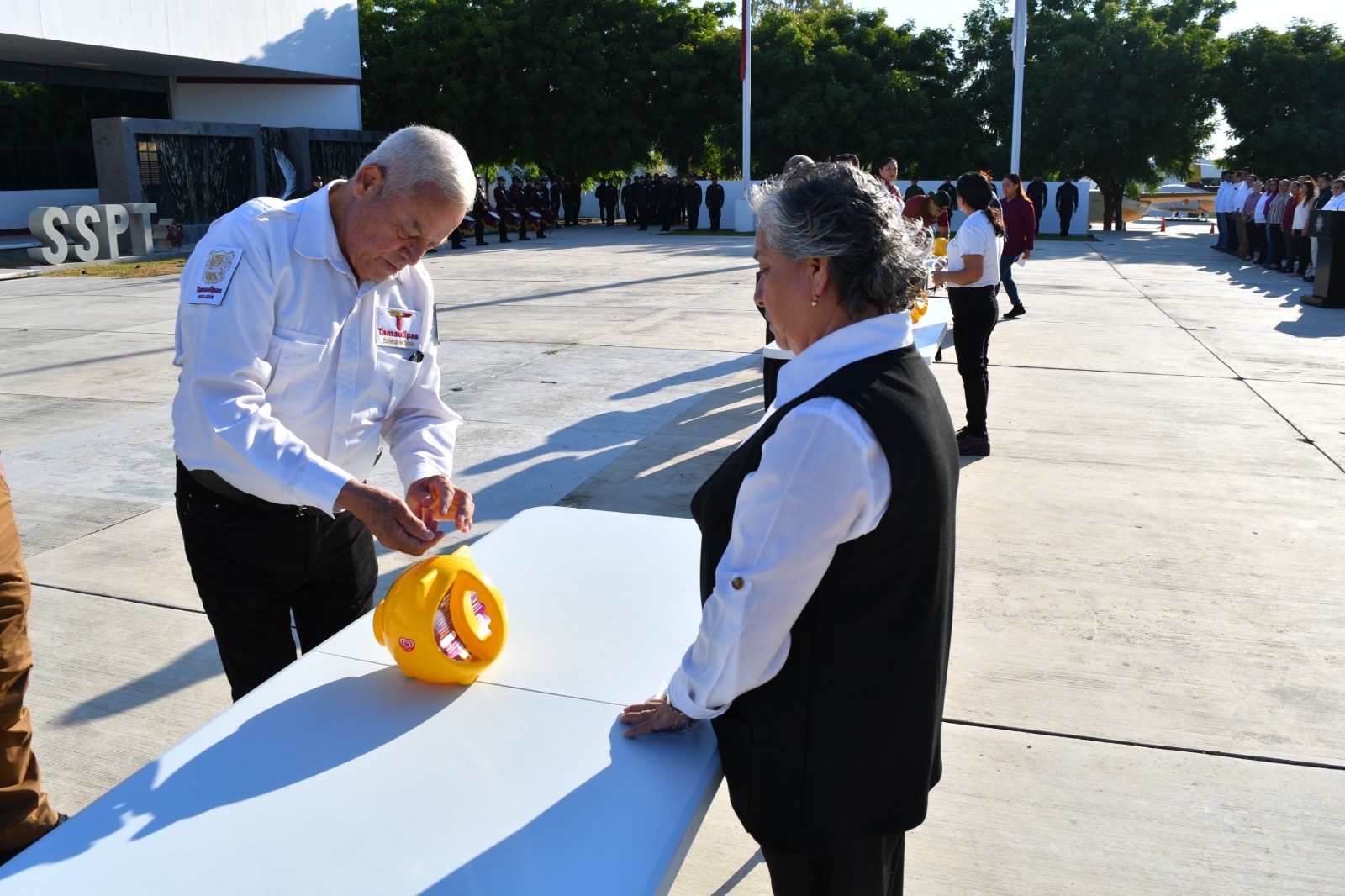 Dicha ceremonia celebrada en el Complejo Estatal de Seguridad Pública contó con la participación de la Banda de Guerra y la escolta de la Guardia Estatal.
