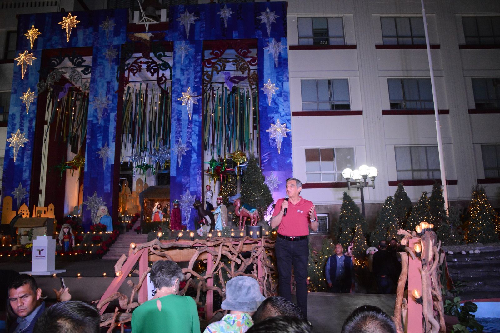 Luego de presenciar, en el 17 Hidalgo, el desfile navideño que inició en el Paseo Pedro J. Méndez y siguió por toda la avenida Francisco I. Madero, con la participación de 24 carros alegóricos de todas las dependencias del Gobierno del Estado y empresas privadas, el gobernador se trasladó a la Plaza Juárez, en donde, junto con miles de familias, encendió el pino navideño.