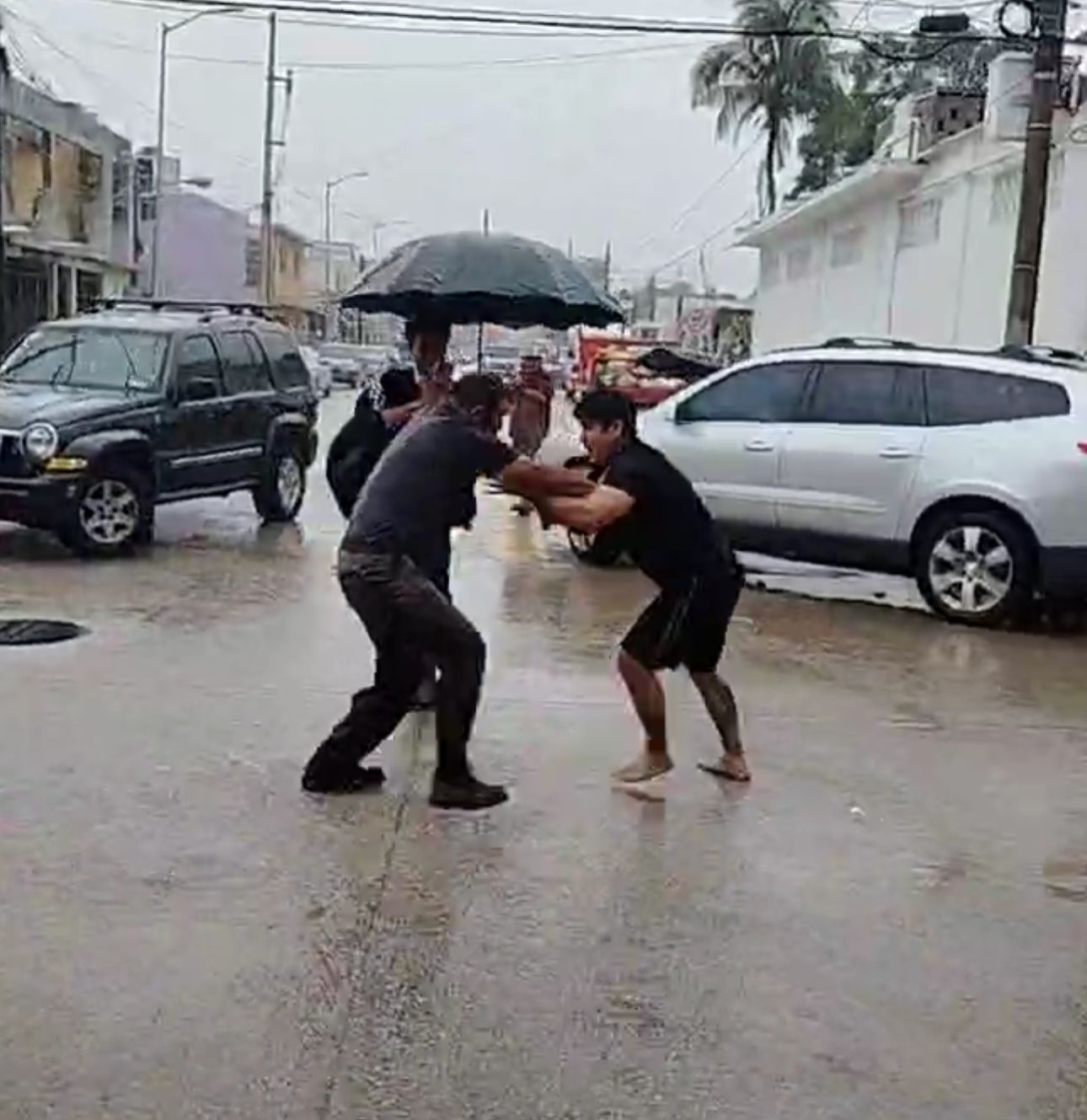 Tan es así que la desesperación se apoderó tanto de los afectados por las anegaciones, como de quienes ya deseaban llegar a su domicilio después de sufrir una travesía por las calles inundadas de la urbe petrolera y al toparse con este bloqueo, fue cuando se detonó la violencia al aventar los carros a quienes impedían el tránsito, lo que provocó que se bajaran de sus automóviles y cortaron los mecates, lo que fue como prender un cerillo y aventarlo a la pólvora, ya que eso llevó a confrontarse verbalmente y finalmente a los golpes.