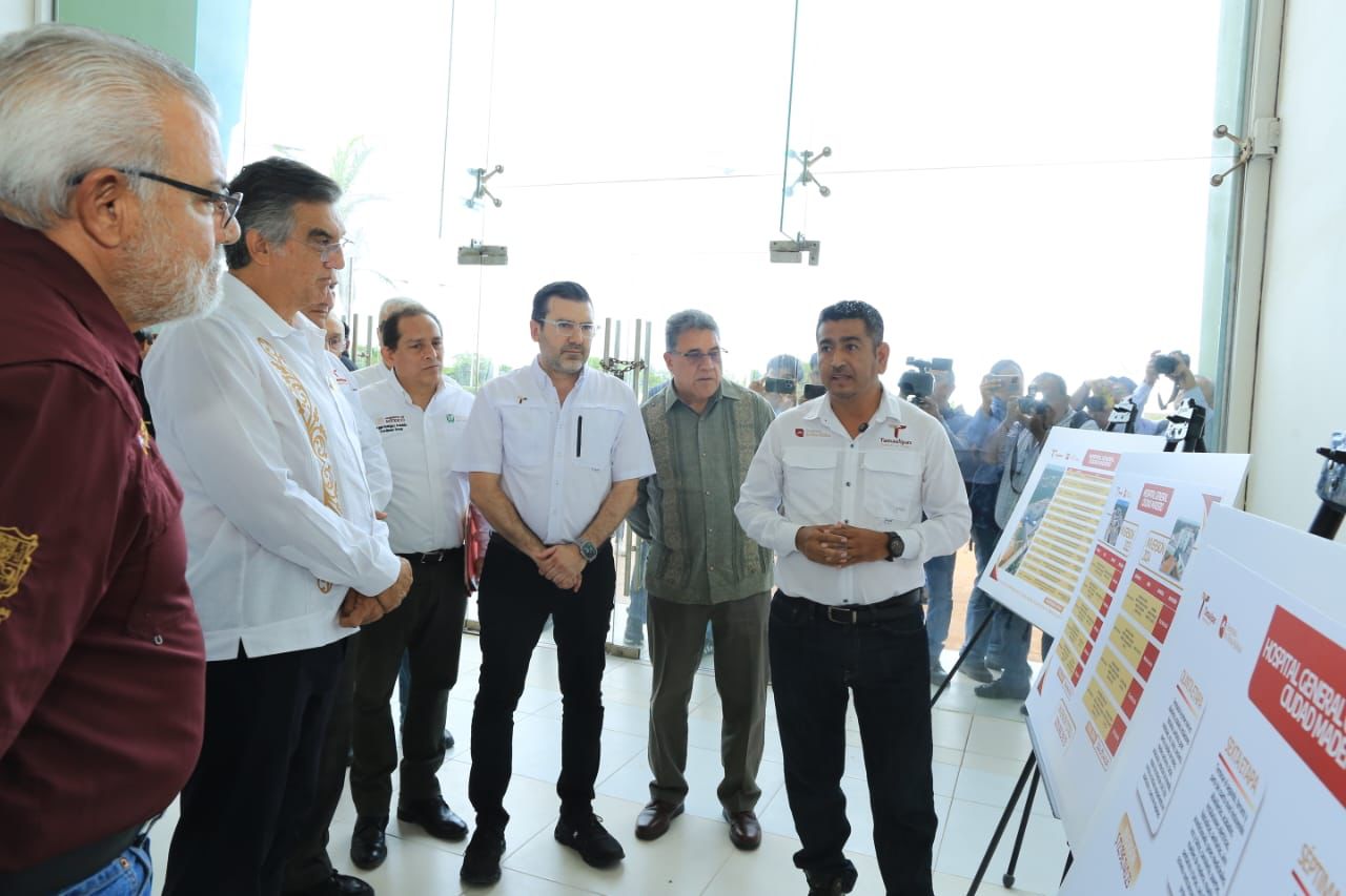 En el recorrido del nuevo hospital y en la conferencia de prensa acompañaron al gobernador: Vicente Joel Hernández Navarro, secretario de Salud; Marggid Rodríguez Avendaño, coordinador del IMSS-Bienestar en Tamaulipas; Mónica Villarreal Anaya, presidenta municipal de Tampico; Erasmo González Robledo, presidente de Madero, y Armando Martínez, presidente municipal de Altamira.