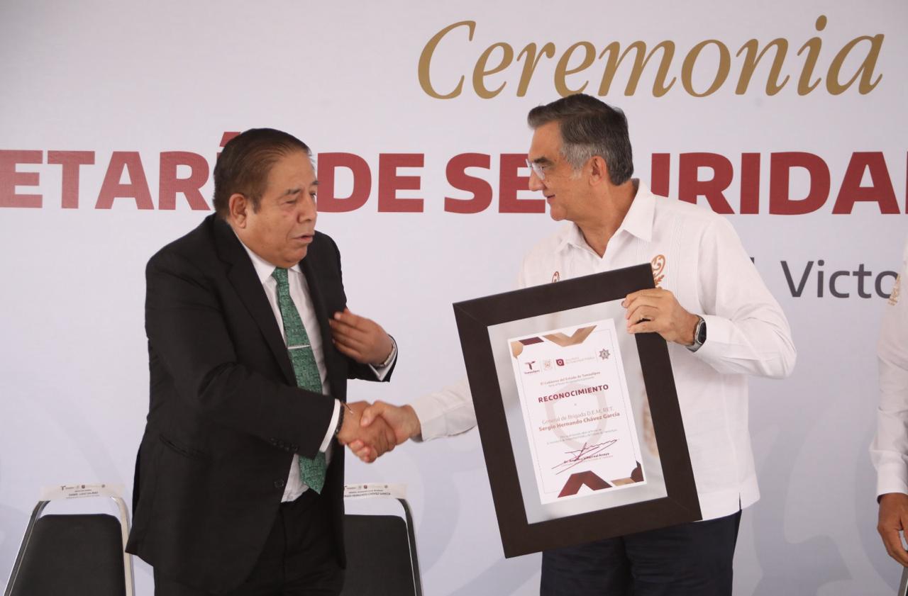 Tras reconocer la labor de Chávez García luego de 33 meses de servicio, Villarreal Anaya destacó el trabajo de las y los integrantes de la Secretaría de Seguridad Pública. “Esta también es un reconocimiento hacia ustedes, como integrantes de este gran equipo, de esta gran fuerza con la que cuenta ahora nuestra entidad, y, como ya se comentó, nos permiten estar ahora dentro de los estados más seguros a nivel nacional”, añadió.