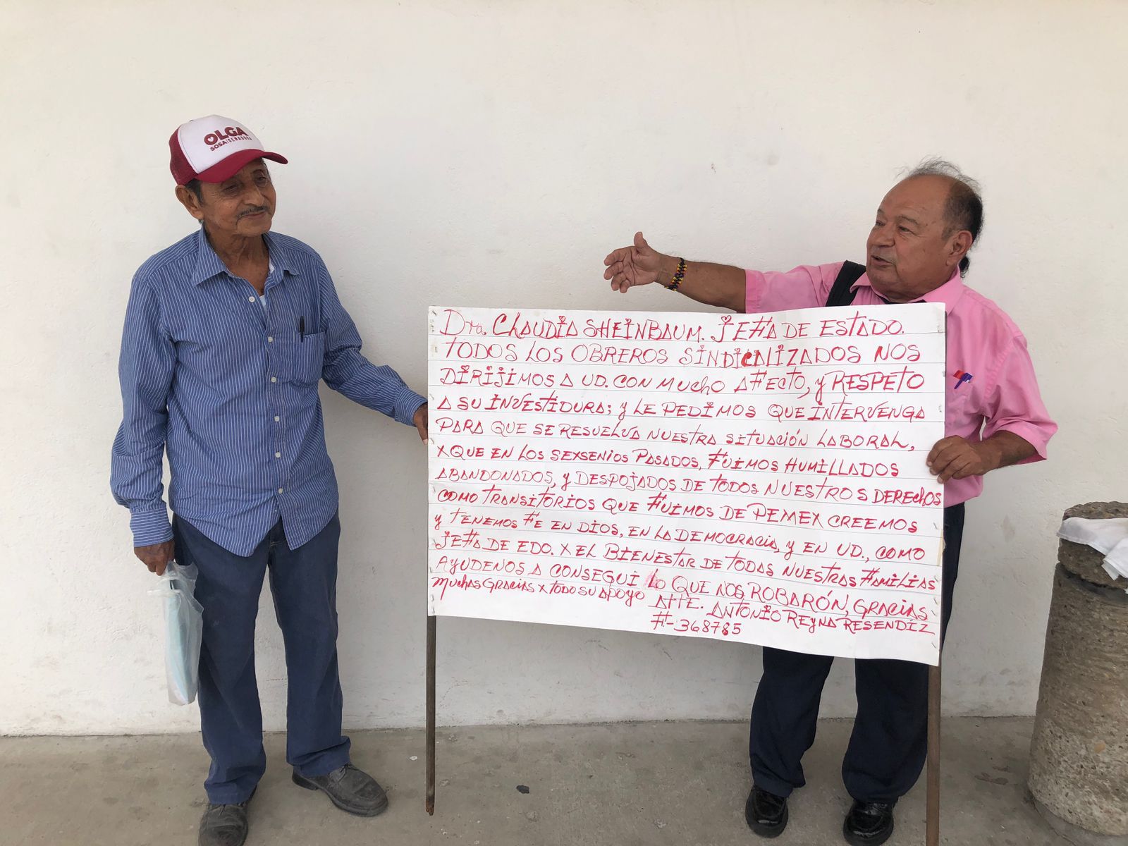 Llegan un ex trabajador de Petróleos Mexicanos al aeropuerto de Tampico, para exigirle a la presidenta de México, Claudia Sheinbaum justicia por todos los obreros de la paraestatal que fueron despojados de todos sus derechos, se trata de Antonio Reyna Resendiz, con ficha #368785.