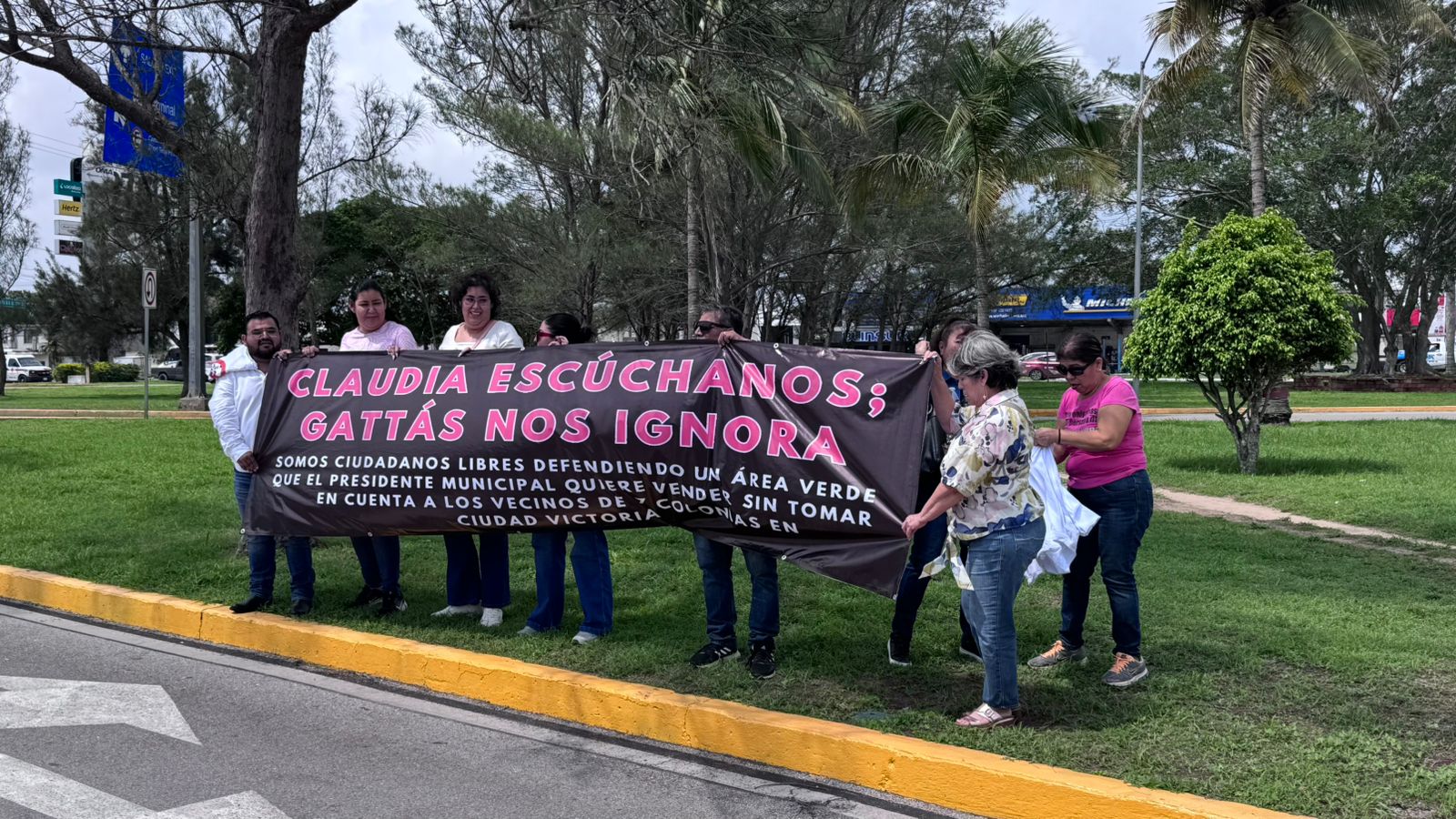 Para denunciar que el Presidente municipal Lalo Gattas pretende vender un área verde a la CFE para que construyan una sub estación eléctrica afectando a 7 colonias donde habitan 8 mil personas, así lo dicho Dario Vega, quien habló a nombre de los colonos.