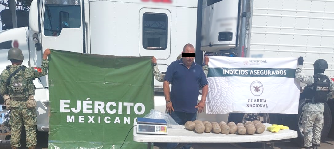 En Opodepe, se detuvo a una persona, se aseguraron 21 kilos de goma de opio y un vehículo de carga.
