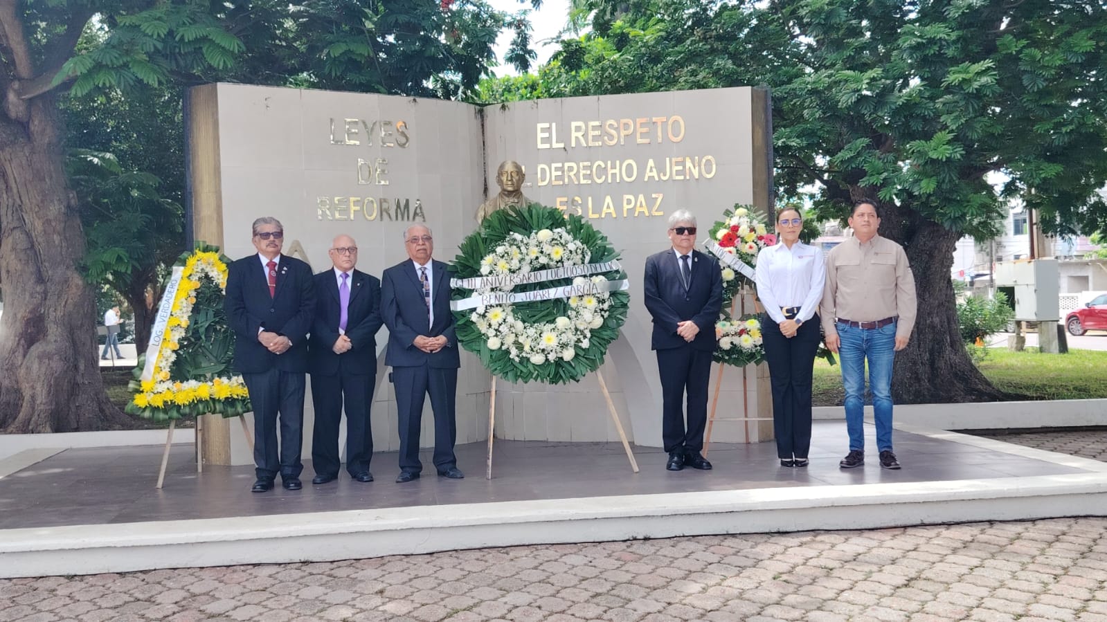 También como parte del programa cívico, el miembro de la Gran Logia pronunció una pieza de oratoria en la que reconoció la vida y obra del ex presidente de México. Al término de la ceremonia, las autoridades colocaron una ofrenda floral y montaron una guardia de honor ante el busto de Benito Juárez García.