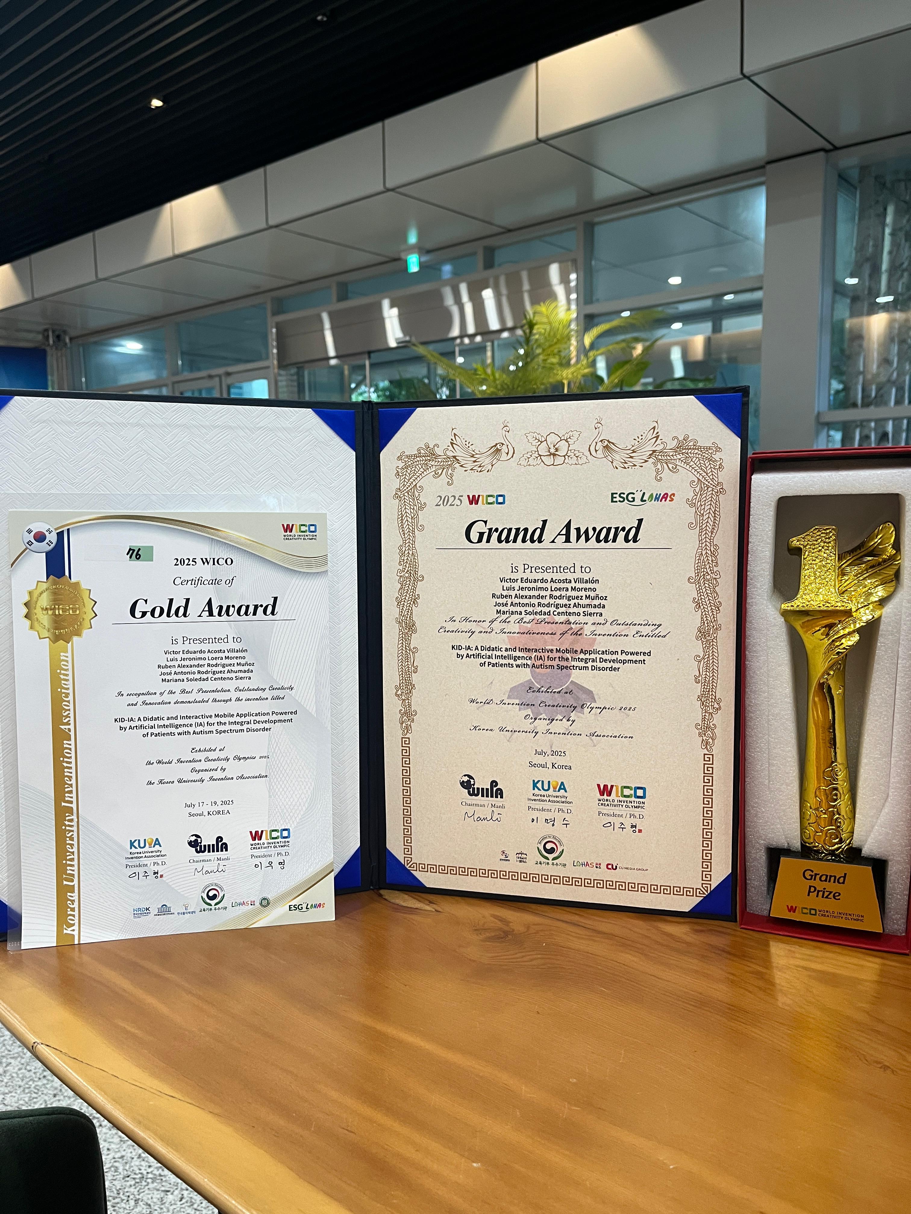 La Universidad Tecnológica de Altamira informa con gran orgullo el histórico triunfo internacional del equipo KID-IA, conformado por estudiantes del Programa Educativo de Mecatrónica, quienes obtuvieron Medalla de Oro y Grand Prize 🏅 en la World Invention Creativity Olympic (WICO) 2025, celebrada en Seúl, Corea del Sur, competencia que reunió a más de 1,000 participantes de 25 países.
