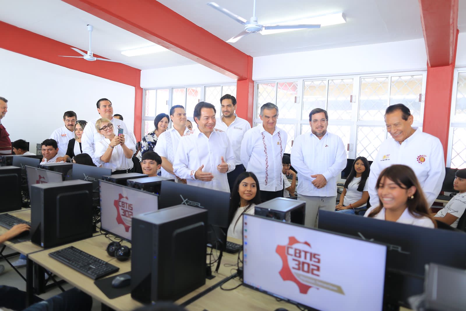En este acto Miguel Ángel Valdéz García, secretario de Educación en Tamaulipas, destacó que, gracias a estos apoyos, todas y todos los alumnos de educación media superior «cuentan con un banco, con un maestro y con un aula como esta. No se nos quedó ninguno fuera», expresó.