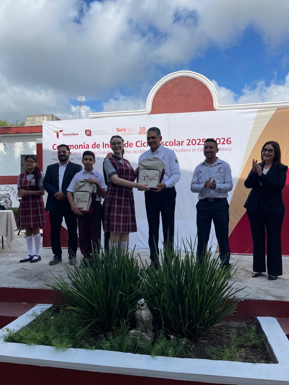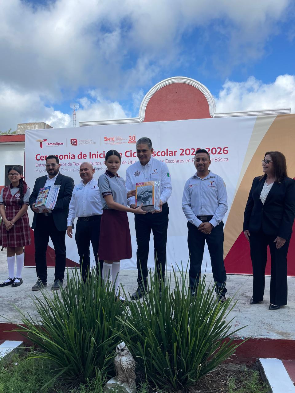 En representación del gobernador Dr. Américo Villarreal Anaya, el secretario de Seguridad Pública de Tamaulipas, Mtro. Carlos Arturo Pancardo Escudero encabezó la ceremonia de inauguración del ciclo escolar 2025-2026 celebrada en la Escuela Secundaria Técnica 49 “Wilfrido Massieu”, ubicada en el municipio de Miguel Alemán.