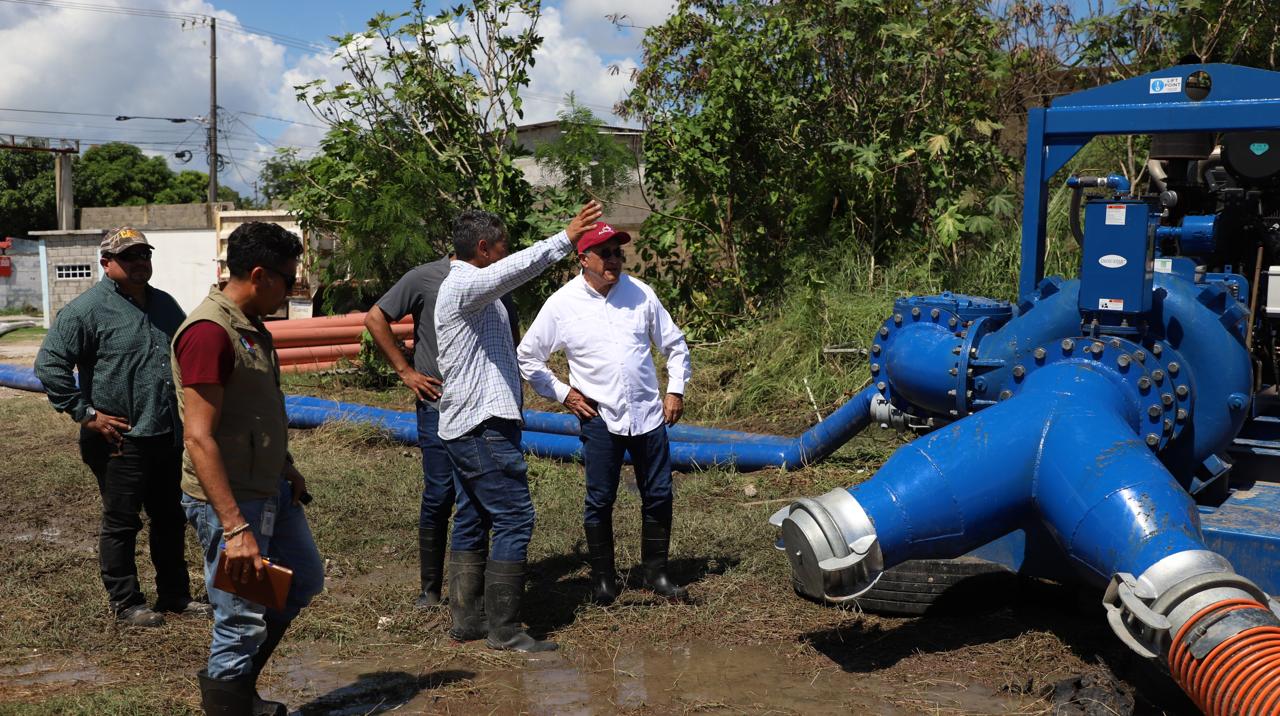Como parte de las acciones de supervisión, el presidente municipal visitó el ejido La Pedrera, donde constató el descenso del nivel del agua en las zonas anegadas, resultado del trabajo conjunto de los equipos de emergencia y del cese temporal de las precipitaciones. Las labores de bombeo implementadas por personal de COMAPA Altamira, han sido clave para mitigar los efectos de las inundaciones.