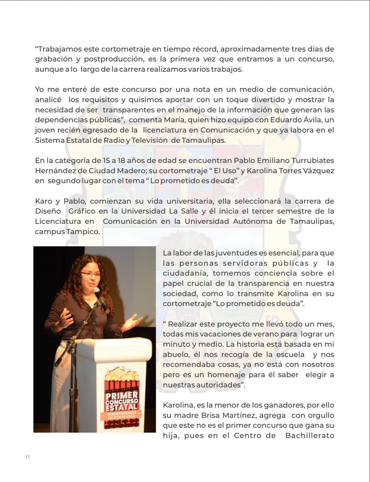 En su primera edición, “Transparencia en Corto 2024”, logró convocar en Tamaulipas a 14 jóvenes divididos en dos categorías: de 15 a 18 años y de 19 a 25.