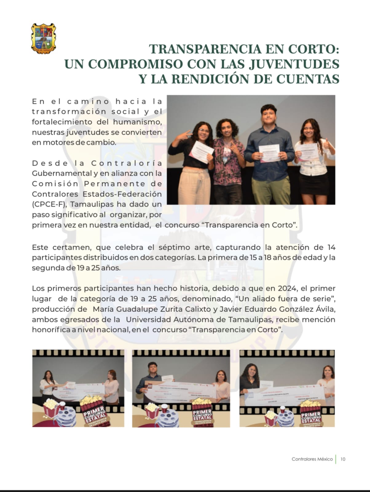 La Secretaría Anticorrupción y Buen Gobierno del Estado de Tamaulipas (SABG), dirigida por Norma Angélica Pedraza Melo, fue reconocida en la edición número XI de la revista Contralores MX 2025 por su primera experiencia institucional en el certamen “Transparencia en Corto”, una iniciativa que busca fomentar valores cívicos a través del arte audiovisual.
