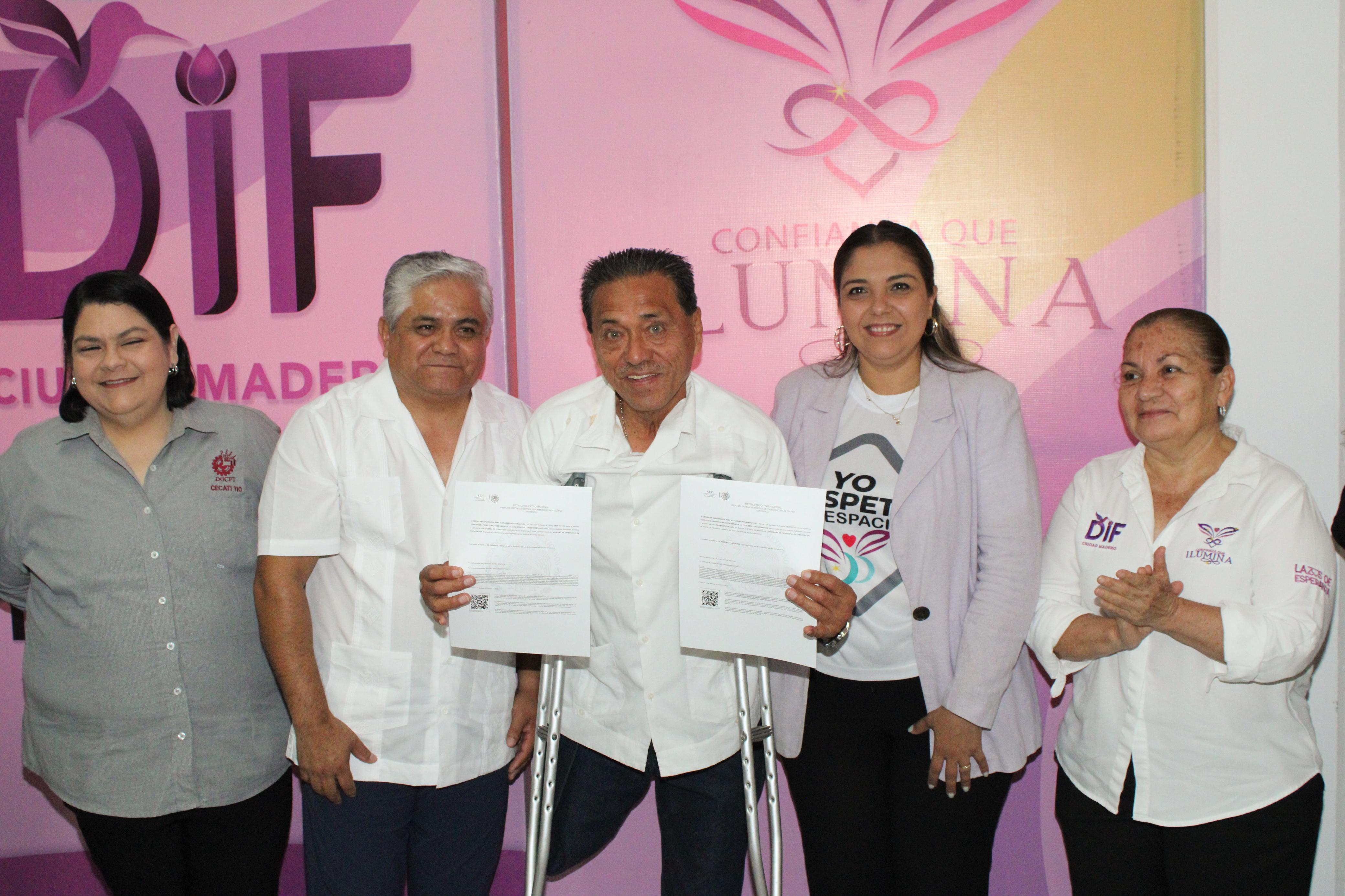 Con el firme propósito de seguir abriendo oportunidades para las personas con discapacidad, el Sistema DIF Ciudad Madero, que encabeza su presidenta, Lic. Dunia Marón Acuña, y el CECATI 110 llevaron a cabo la entrega de constancias de los cursos de capacitación para inclusión laboral, en los que participaron 24 alumnas y alumnos que concluyeron su formación como Auxiliares Administrativos y Operadores de Call Center.
