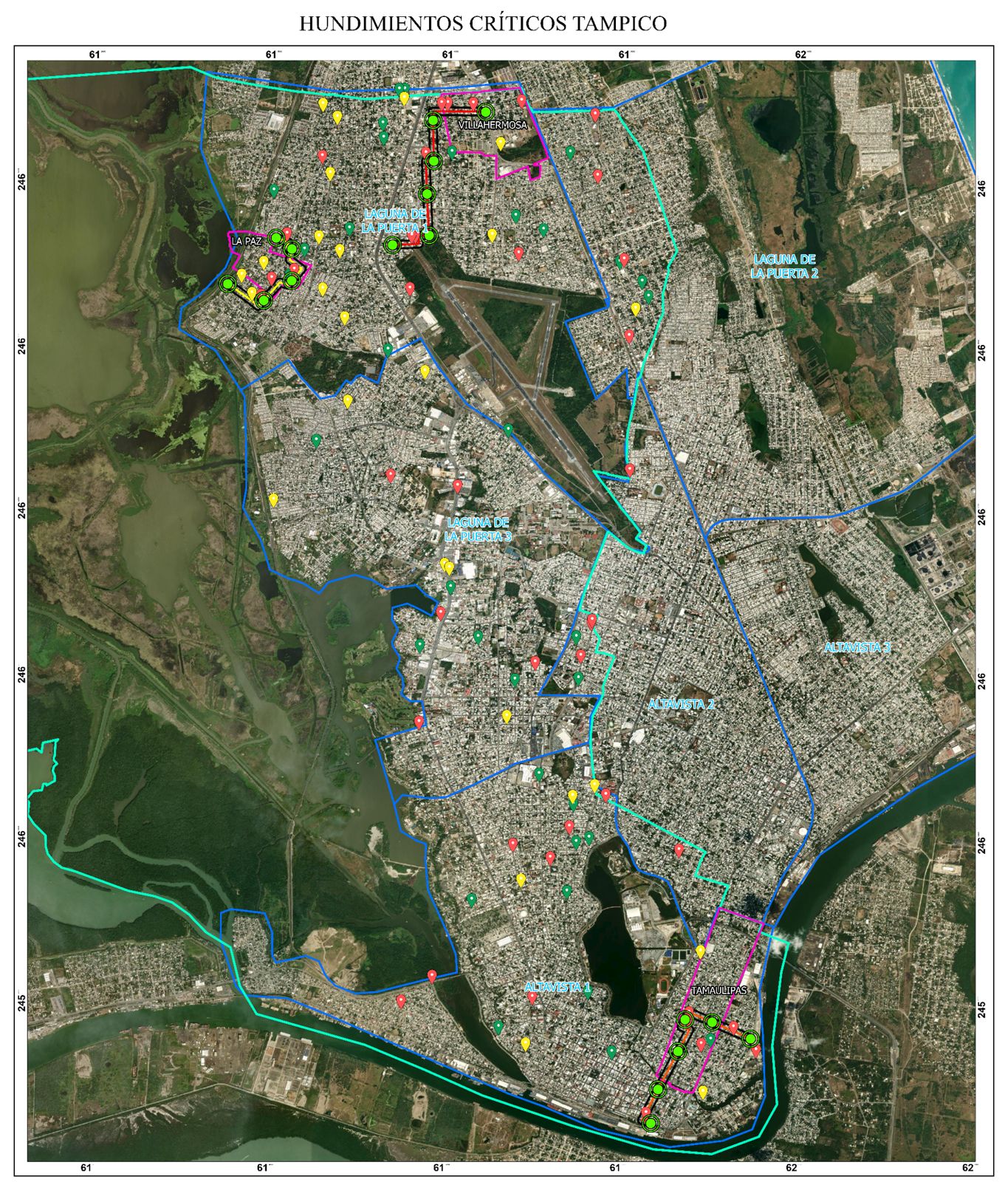 Se contempla la instalación de 17 pozos de observación en Tampico y 21 en Ciudad Madero, ubicados estratégicamente en áreas donde se ha identificado mayor vulnerabilidad ante hundimientos o filtraciones.