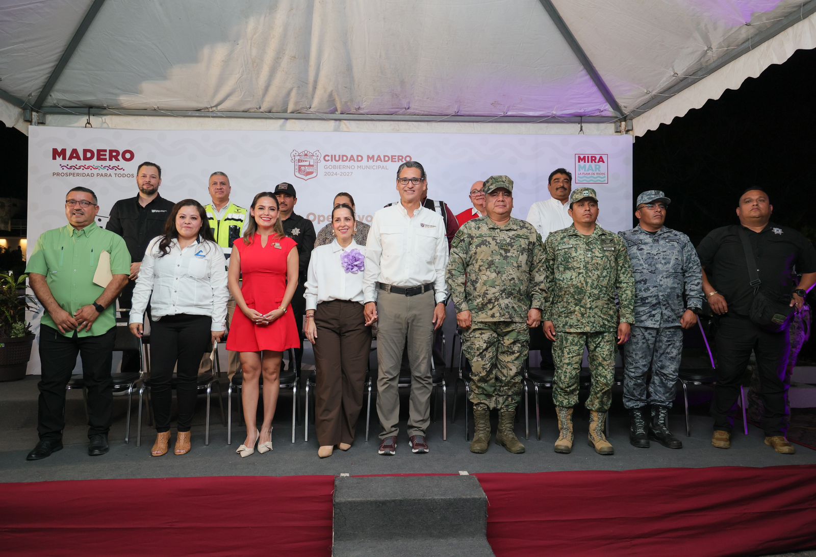 El presidente municipal Erasmo González Robledo acompañado de su esposa Dunia Marón Acuña, presidenta del sistema DIF; además de síndicos y regidores, hizo un amplio reconocimiento a las fuerzas de seguridad, por sumarse a la protección de comercios, empresas y a los mismos consumidores durante los días del Buen Fin; pero también durante el periodo de Navidad 2025, que vendrá a reforzar las estrategias de seguridad que ha implementado el Gobernador Dr. Américo Villarreal Anaya en todo Tamaulipas.