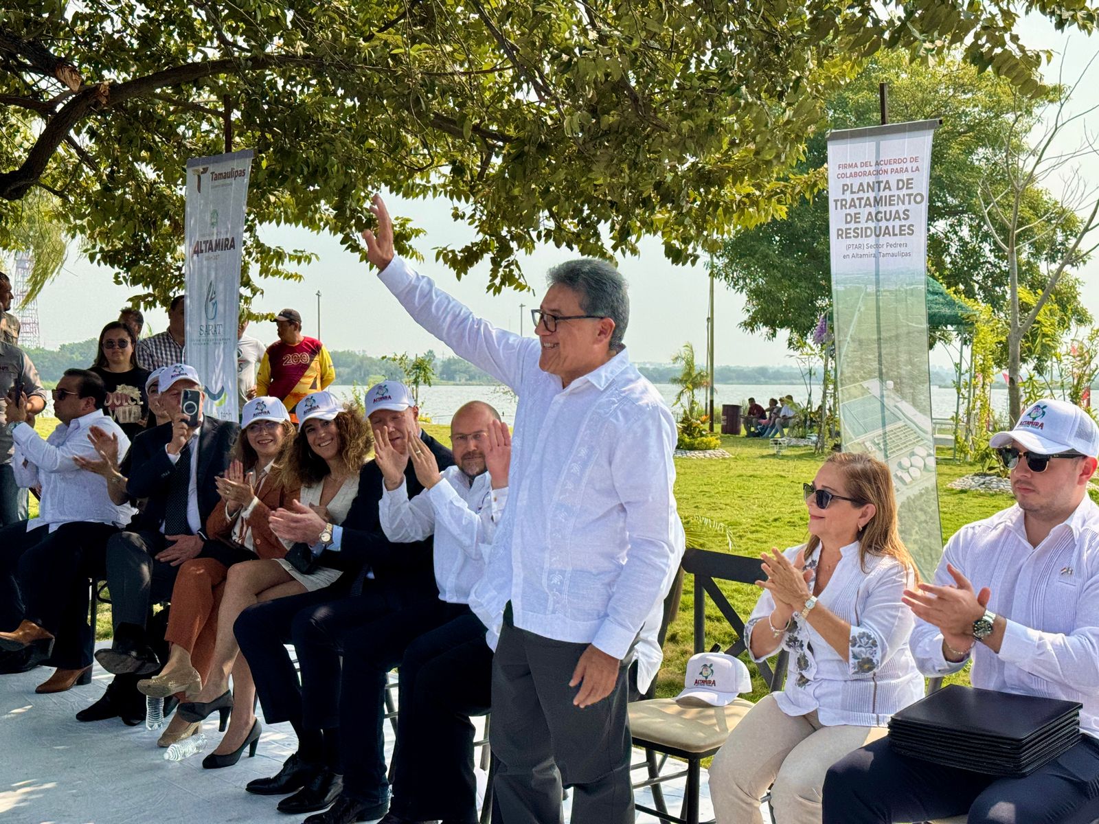En un acto sin precedentes en beneficio del saneamiento ambiental del municipio, el alcalde Dr. Armando Martínez Manríquez, acompañado por su esposa, la presidenta del DIF Altamira, C.P. Rosa Irma Luque Pérez, encabezó la firma del acuerdo de colaboración para la construcción de la Planta de Tratamiento de Aguas Residuales (PTAR) del sector Pedrera.