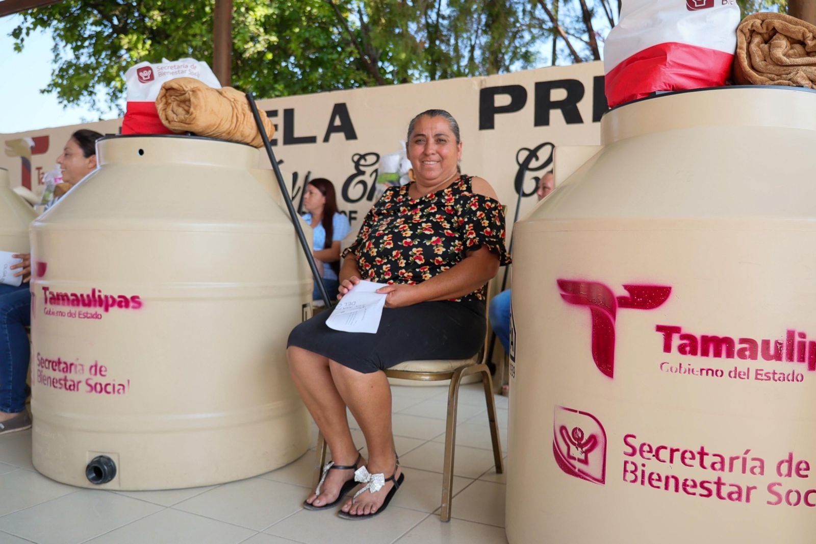 Ante las y los beneficiarios y otras autoridades presentes, se hizo entrega de 25 tinacos, paquetes alimentarios y cobijas, para posteriormente trasladarse al ejido Lázaro Cárdenas del municipio de Burgos, a donde se llevaron de 50 paquetes alimentarios del programa “Alimentando tu Bienestar”, así como 25 tinacos del programa “Atención Ciudadana para el Bienestar Social”.
