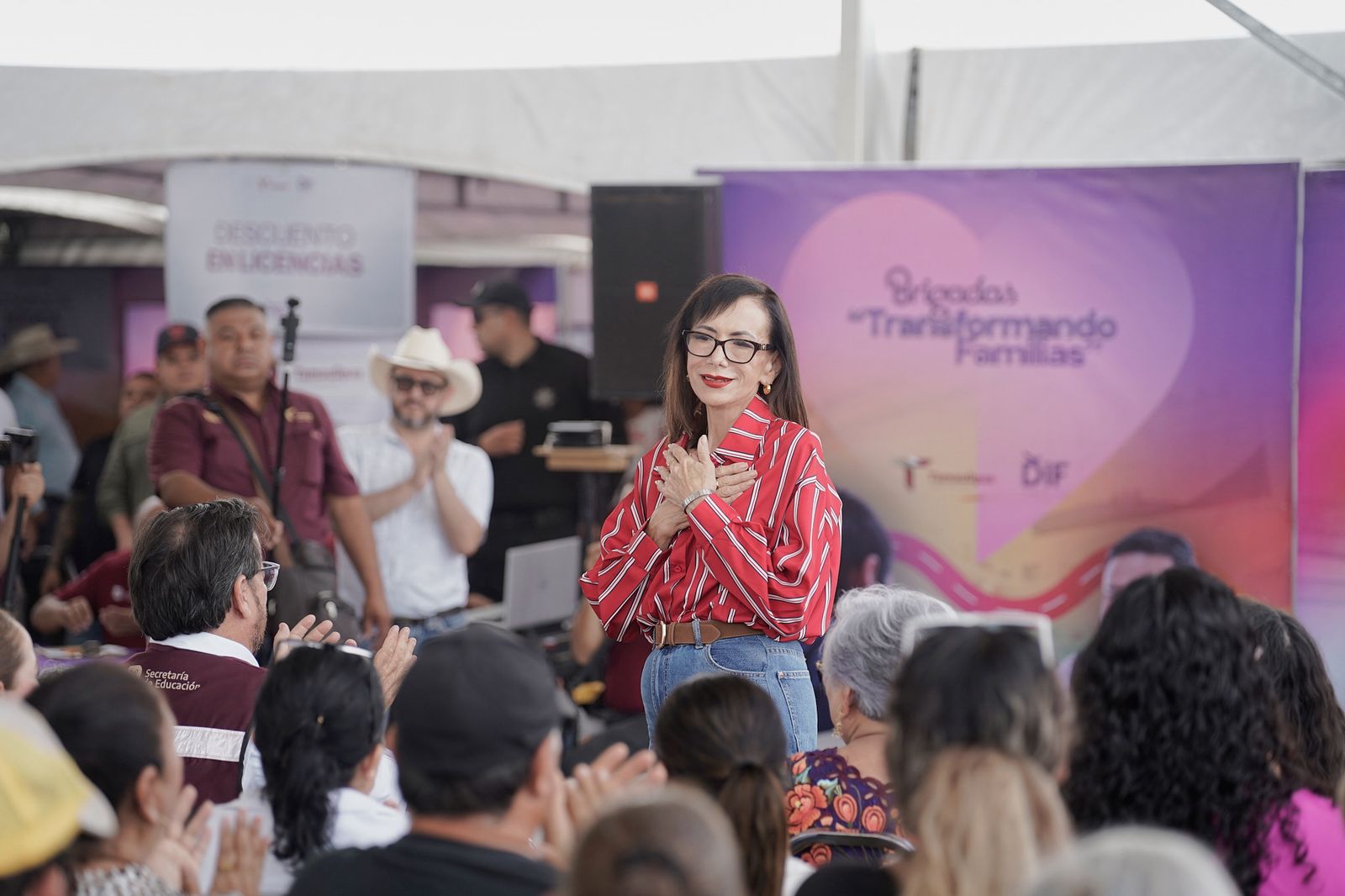 Patricia Eugenia Lara Ayala, directora general del DIF Tamaulipas, presidió la jornada y dirigió un mensaje a las familias asistentes, expresando su alegría al ver “rostros felices al recibir los beneficios del Gobierno del Estado y del DIF Tamaulipas directamente en sus manos y en su comunidad”.