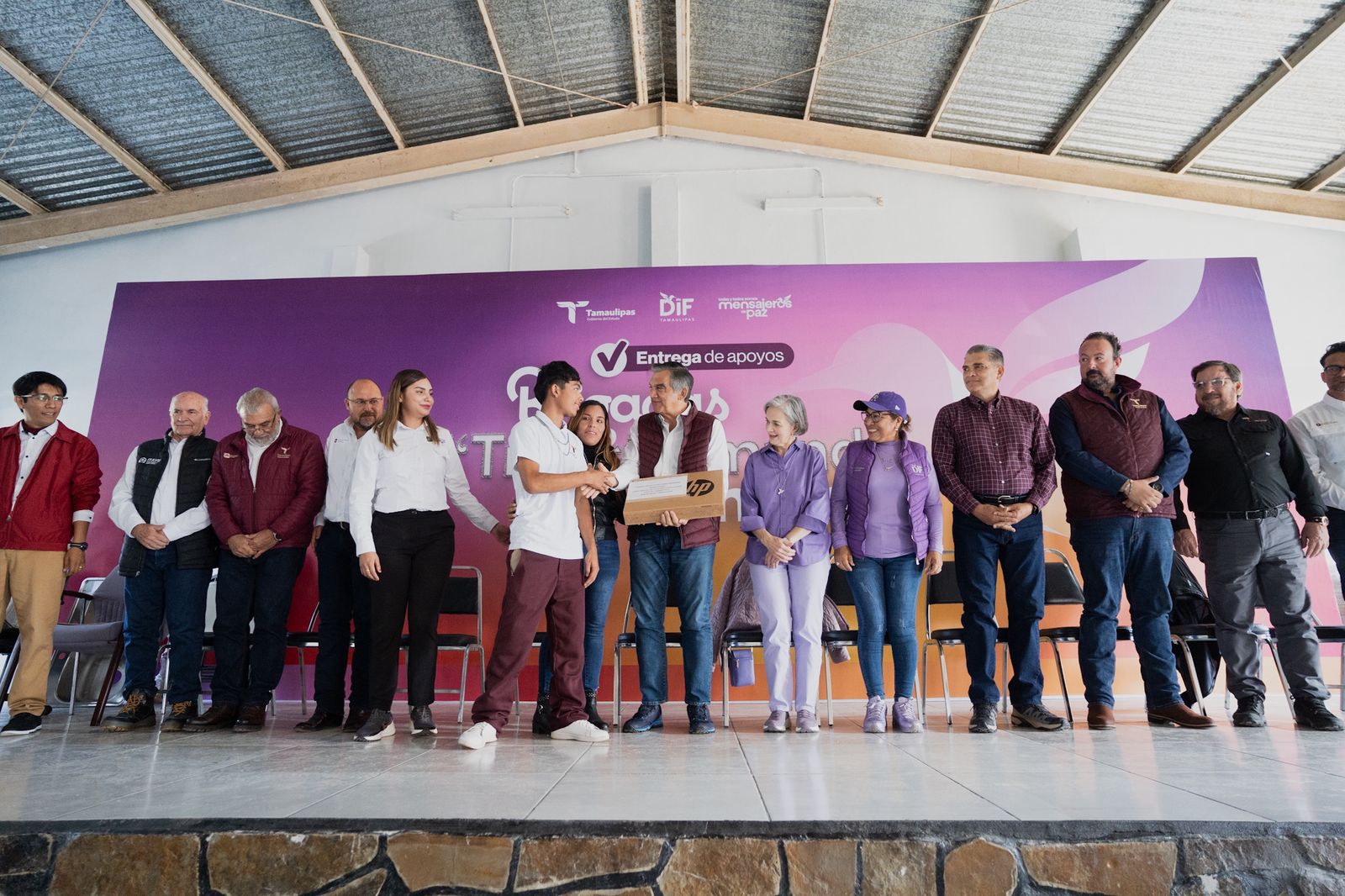 En una visita de trabajo a este municipio, el gobernador Américo Villarreal Anaya y la presidenta del Sistema DIF Tamaulipas, la doctora María de Villarreal, reafirmaron su compromiso con las familias de San Nicolás mediante la entrega de diversos apoyos solicitados previamente en la brigada “Transformando Familias”, entre los que destacan aparatos funcionales, enseres domésticos, herramientas de trabajo y equipamiento para el hogar y el emprendimiento.