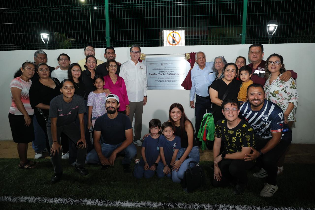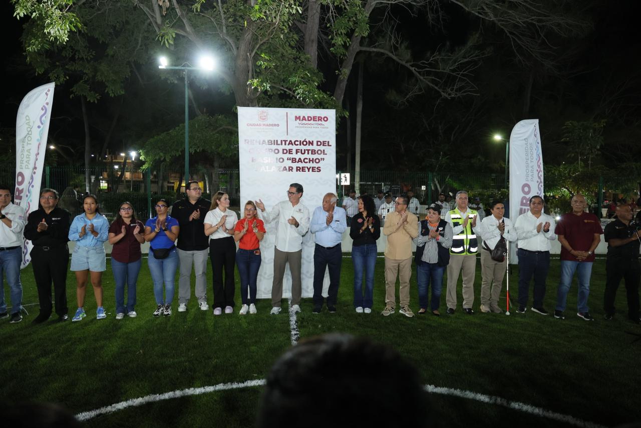 También como parte de esta ceremonia de inauguración de la rehabilitación de espacios de la plaza Vicente Guerrero, el presidente municipal Erasmo González Robledo inauguró la cancha de fútbol de pasto sintético, a pocos días que el Cabildo en pleno aprobara el nombre de Basilio Salazar Reyes, como un reconocimiento a su trayectoria dentro del fútbol profesional y que puso muy en alto el nombre de Ciudad Madero.