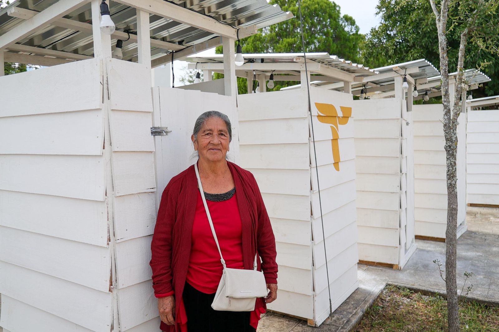 La gira continuó en la cabecera de ese municipio, donde la comitiva fue recibida por la presidenta municipal Ma. Dolores Mansilla Huerta, y donde atestiguaron la entrega de letrinas con fotoceldas e iluminación LED, así como de paquetes alimentarios y cobijas.
