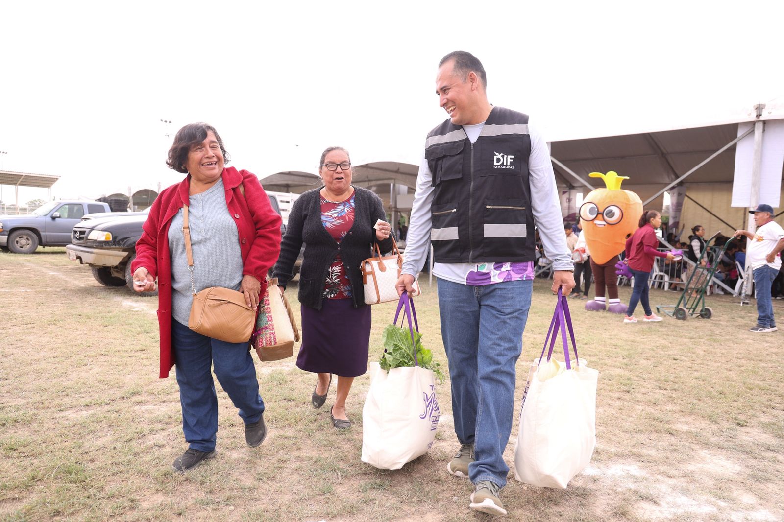 Durante la jornada se entregaron mil paquetes alimentarios integrados por hortalizas frescas cosechadas por productores regionales, además de artículos esenciales de la canasta básica. Todo fue dispuesto en una bolsa ecológica reutilizable elaborada por mujeres y hombres que participan de manera habitual en la Casa Club del Adulto Mayor y en el CEDIF Clarita Nava de Ulibarri.