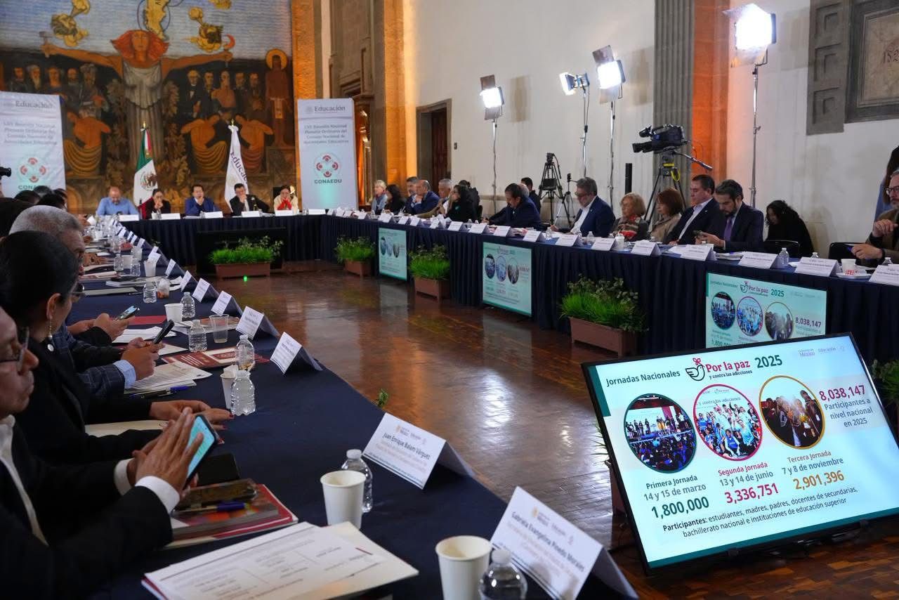 En la reunión, en donde estuvieron presentes las y los titulares del sector educativo de los estados de la República, se evaluó el avance de los proyectos educativos que impulsa la presidenta Claudia Sheinbaum Pardo en su primer año de gobierno.