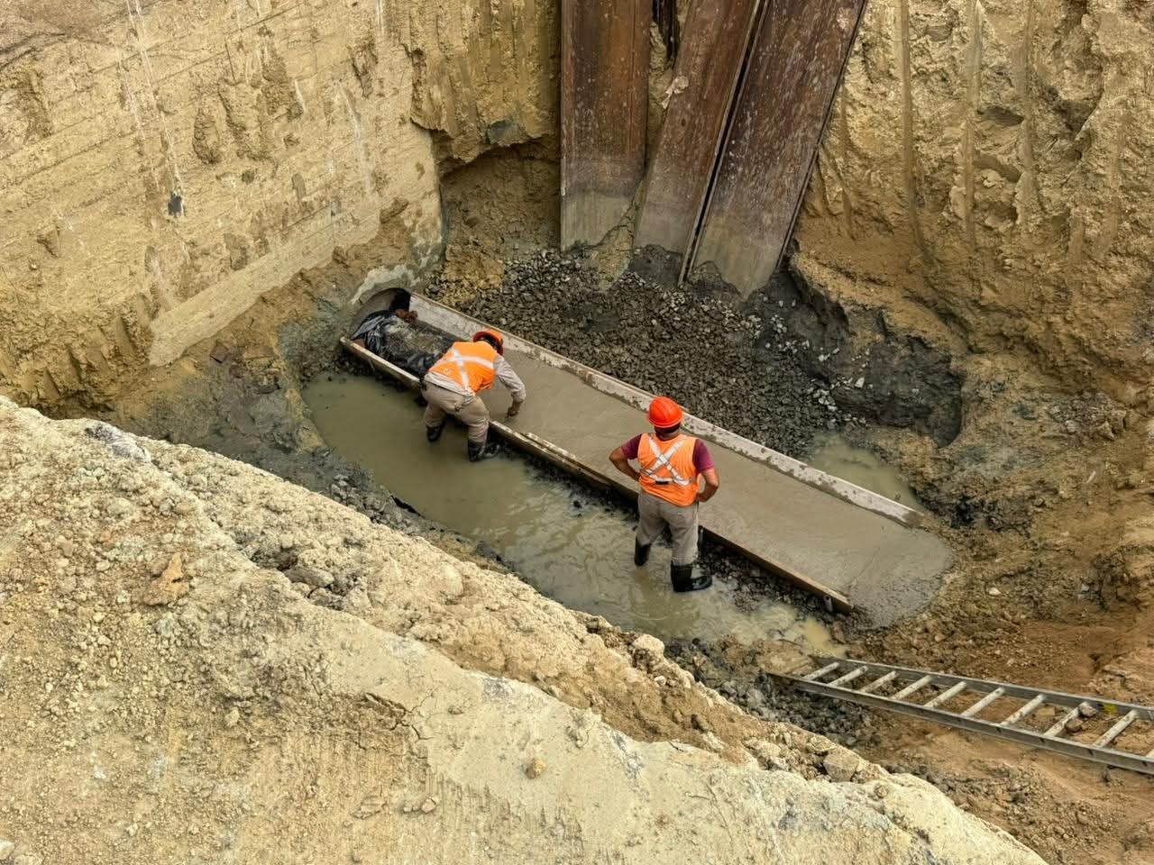 Las labores incluyeron la rehabilitación de 30 metros lineales de tubería de 24 pulgadas de diámetro, a una profundidad aproximada de 6 metros, intervención que representó una obra de alta complejidad técnica y que refuerza significativamente la conducción de aguas pluviales en esta zona.
