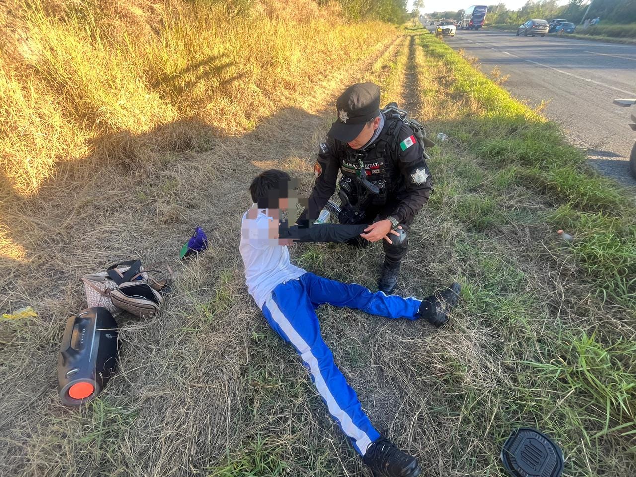 Personal de la Guardia Estatal de Apoyo Carretero atendió un accidente de tránsito registrado en el kilómetro 54 de la Carretera Federal 85, tramo Victoria–Monterrey, que dejó como saldo a un menor de edad con quemaduras, luego de que un vehículo en que viajaba se incendió tras el percance.