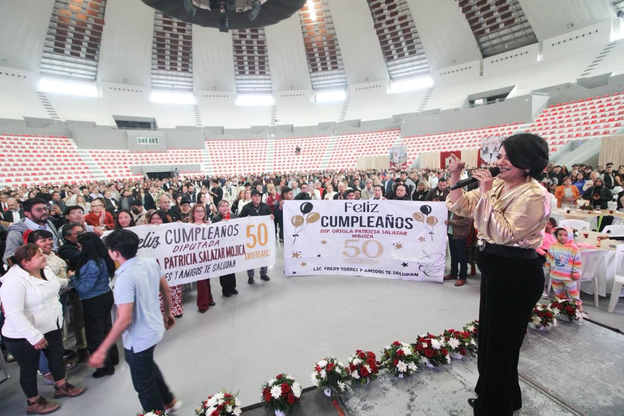 Alrededor de dos mil personas acompañaron a la diputada Úrsula Salazar en su cumpleaños número 50, celebrado en el emblemático Domo Madero, donde recibió muestras de cariño de familias, líderes sociales y figuras políticas del sur de Tamaulipas.