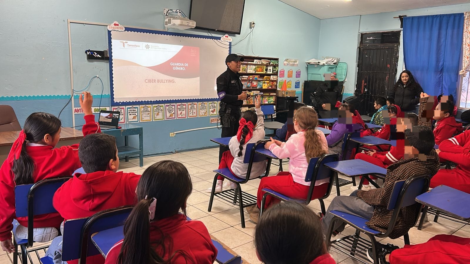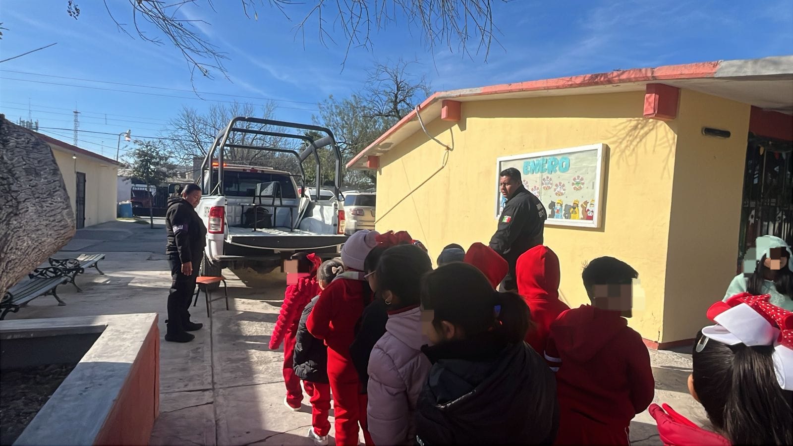 Estudiantes de la Escuela Primaria Enrique C. Rebsamen recibieron la visita de personal de la Guardia Estatal de Género, quienes además de brindar una plática informativa, tuvieron una convivencia con el alumnado.