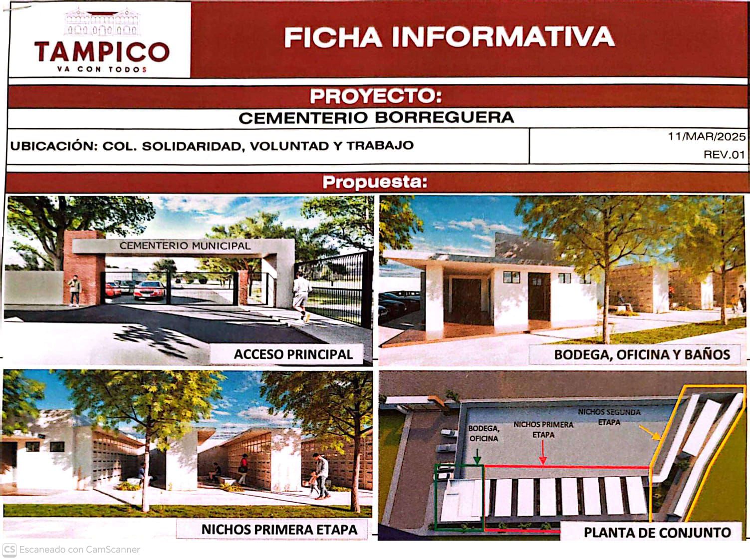 Ante la falta de espacios para sepulturas en los cementerios municipales, el Ayuntamiento de Tampico analiza la construcción de nichos para urnas funerarias en el panteón de la colonia Solidaridad, Voluntad y Trabajo, conocido como “La Borreguera”.