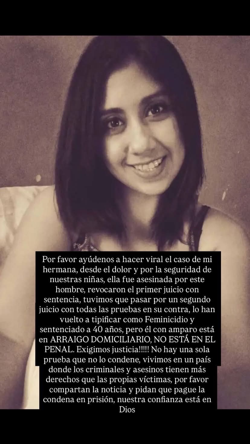 Revocaron el primer juicio con sentencia, se tuvo un segundo juicio con todas las pruebas en su contra. Lo han vuelto a tipificar como feminicidio y sentenciado a 40 años, pero él con amparo está en arraigo domiciliario, no está en el penal, exigimos justicia, denuncian familiares.