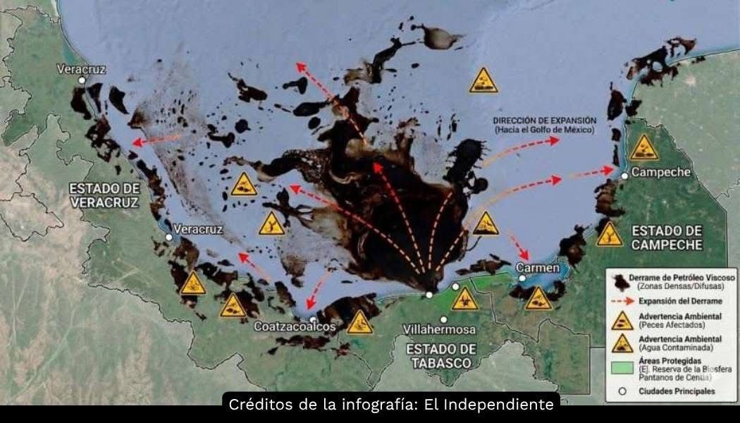 El derrame de hidrocarburo registrado en el estado de Tabasco continúa desplazándose por el Golfo de México y ya se encuentra cada vez más cerca de Playa Miramar, alertaron autoridades ambientales.