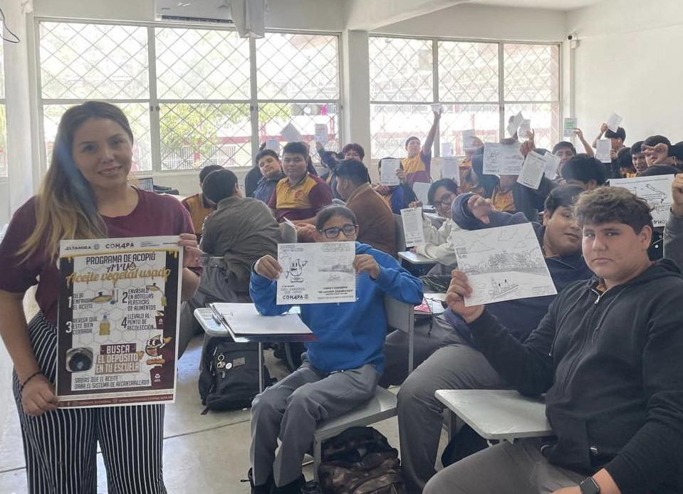 Con el objetivo de contribuir al desarrollo de una cultura ambiental sustentable que abarque el cuidado del agua y prácticas de reciclaje, la COMAPA Altamira, que dirige el Dr. Gabriel Arcos Espinosa, desarrolla en planteles educativos pláticas informativas y actividades enfocadas a la protección del medio ambiente, además del acopio de aceite usado.